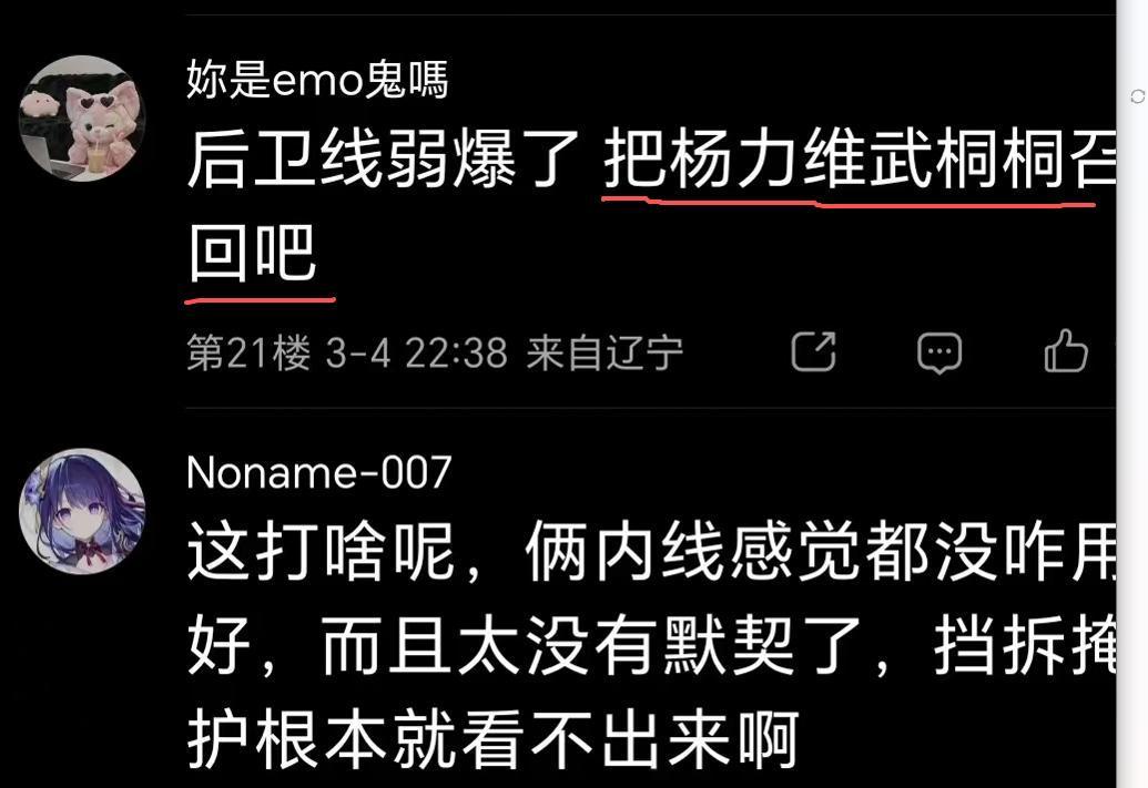 个人认为重新召回武桐桐和杨力维是可行的,也是非常必要的,否则中国女篮现有的后卫线必会被打爆,拿不到世界杯的入场券。你们说呢?